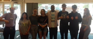 A recent group of volunteers who were with us for a week to help out with the donated items and serve our customers.